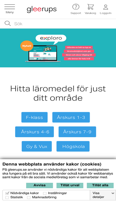 Tillsammans med lärare elever och forskare utvecklar Gleerups läromedel och kurslitteratur för framgångsrikt lärande. Vi samarbetar med ett stort antal olika förlag distributörer. På Lärportalen använder vi kakor cookies för att webbplatsen ska fungera så bra som möjligt för dig Jag förstår.